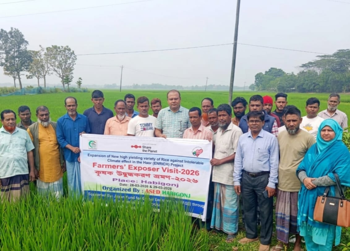 এসেড হবিগঞ্জ কর্তৃক সুনামগঞ্জ জেলার শান্তিগঞ্জ উপজেলায় বাস্তবায়নাধীন এনরিচ (ENRICH) প্রকল্পের আওতায় কৃষক উদ্বুদ্ধকরণ ভ্রমণ (Farmers’ Exposer Visit) অনুষ্ঠিত